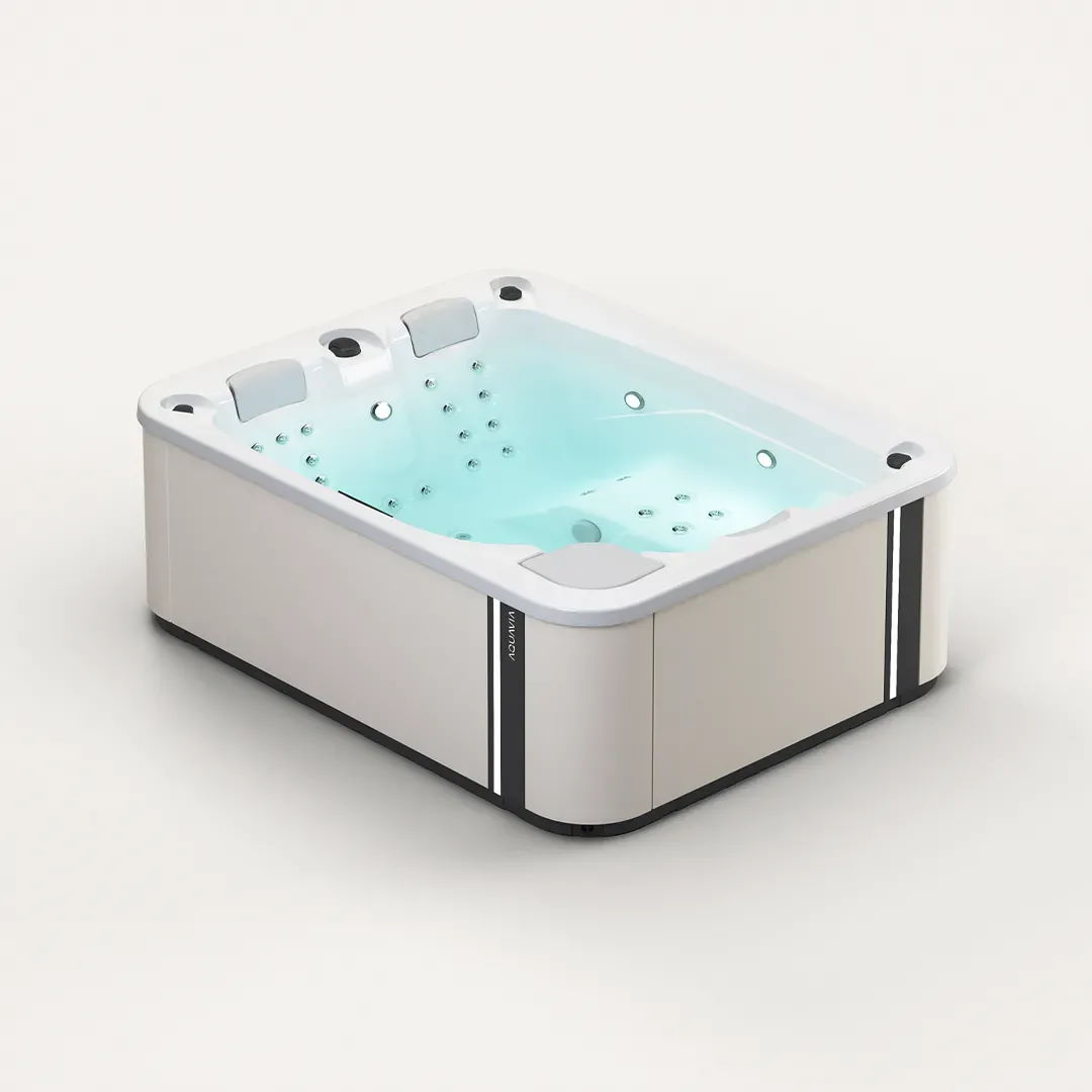 Tauchen Sie ein in eine Welt der Entspannung und des Luxus mit dem Whirlpool Touch Pro von Aquaviaspa. Als ideales Modell für Paare und kleine Familien bietet dieser kompakte und dennoch geräumige Whirlpool ein unvergleichliches Hydromassage-Erlebnis. Mit seinen Maßen von 216 x 166 x 74 cm fügt er sich perfekt in jeden Garten, jede Terrasse oder auch in den Innenbereich ein.